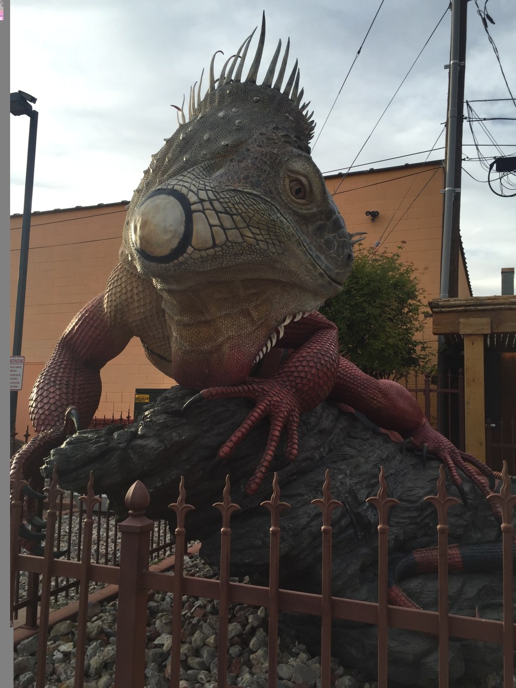 We dined at a cool place called the Red Iguana 2, more Mexican food, with an amazing iguana sculpture out front. I look like I’m in pain in the picture shot by the waiter because I suck at fake smiles and he didn’t make us laugh.