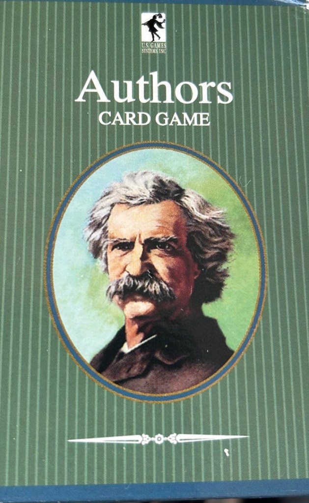 When we were leaving after literally being there for only about 18 hours, he met us in the driveway and presented me with a deck of “Authors Card Game” playing cards – with Mark Twain on the box cover, that he said he used to play with in the Philippines. He said he used the cards as a jump starter to read the works of American authors from Twain and Dickins to Longfellow and Poe.